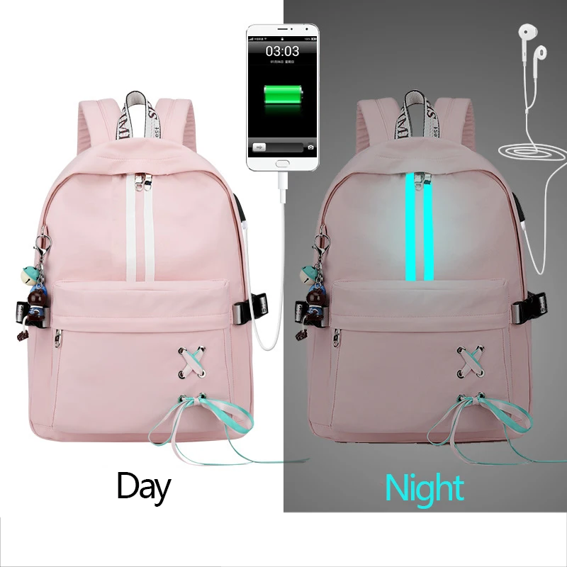 2019 USB Charge luminous Anti Theft Reflective Waterproof Women Backpack School Bag Girls Travel sc