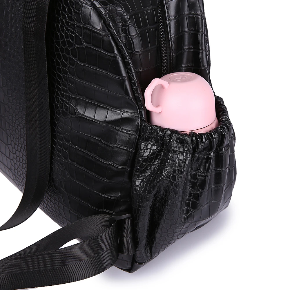 Waterproof Diaper Backpack for Mother Black Stone Pattern Large Capacity Nappy Bag for Newborn Baby