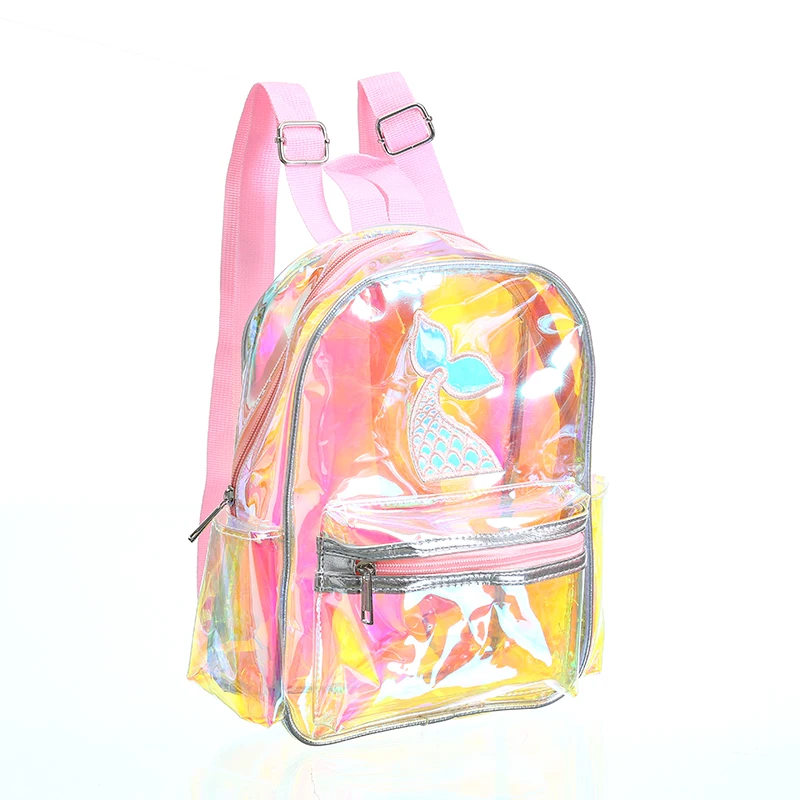 Girl Laser PVC Mermaid Backpack Summer Transparent Waterproof School Bag Large Capacity Holographic