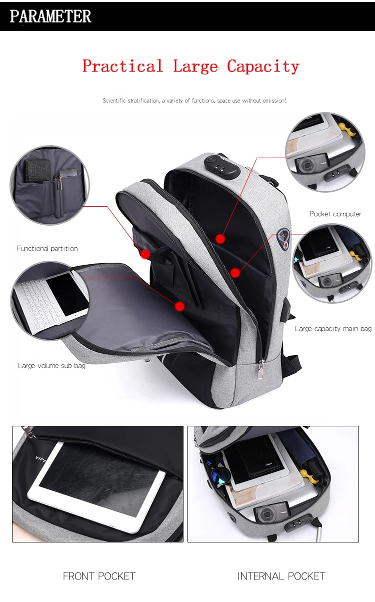 OUBDAR Men Multifunction Anti Theft Backpack 15.6" Inch Laptop Usb Charging Backpacks Waterproof Sc