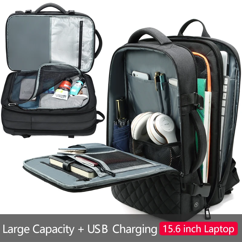 2019 Travel Men's Backpack Multi-layer Space 15.6 inch Laptop Bag USB Charging Port Multifunction