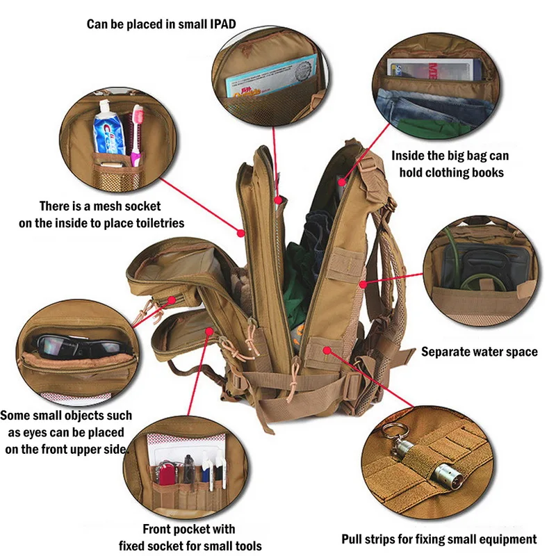 Litthing Backpack Military Backpack Waterproof Rucksack Outdoor Camping Hiking Fishing Bags