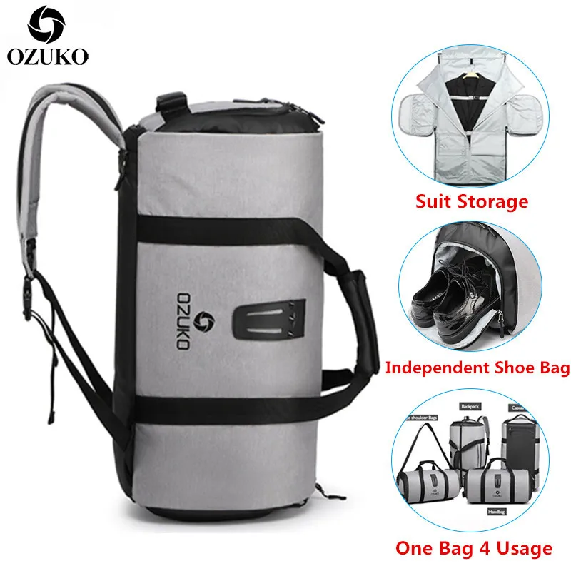 OZUKO Multifunction Men Suit Travel Bag Backpack Large Capacity Duffle Bag Suit Storage Trip Luggag