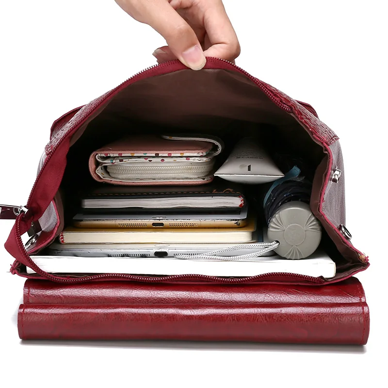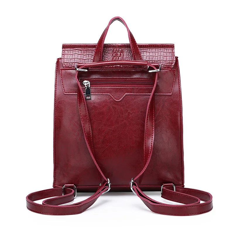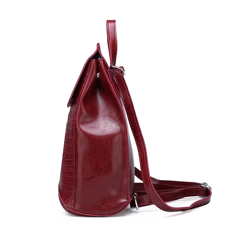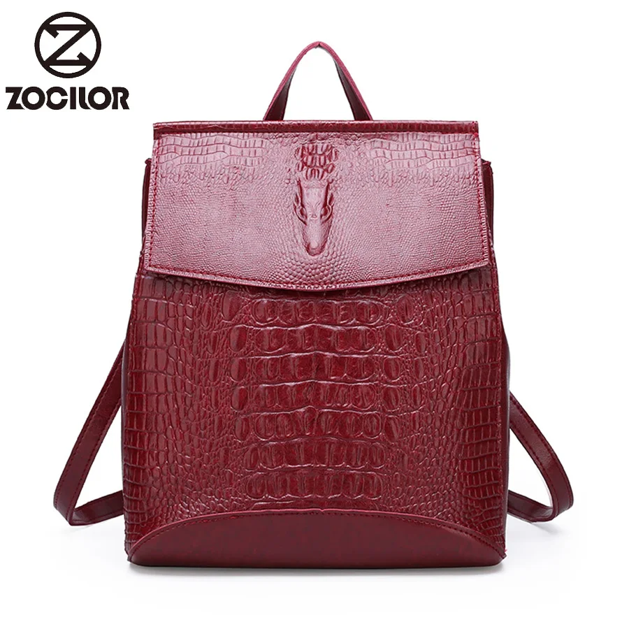Women Leather Backpacks High Quality 2019 Female Vintage crocodile Backpack Travel Shoulder Bag Sch