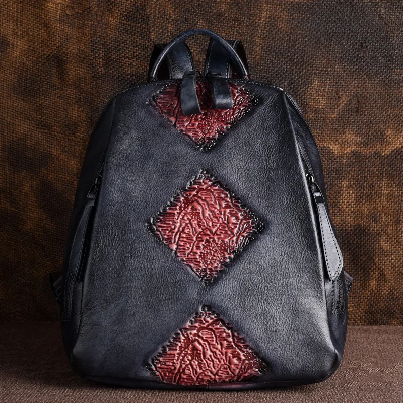 Natural Skin Travel Bag Vintage Rucksack Female Embossed Design Leisure Trends Daypack Knapsack Wom