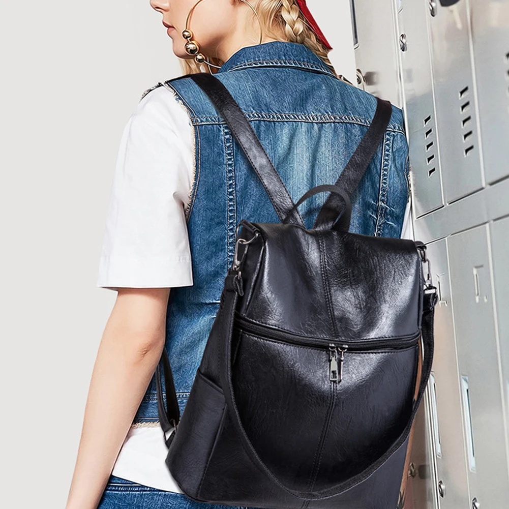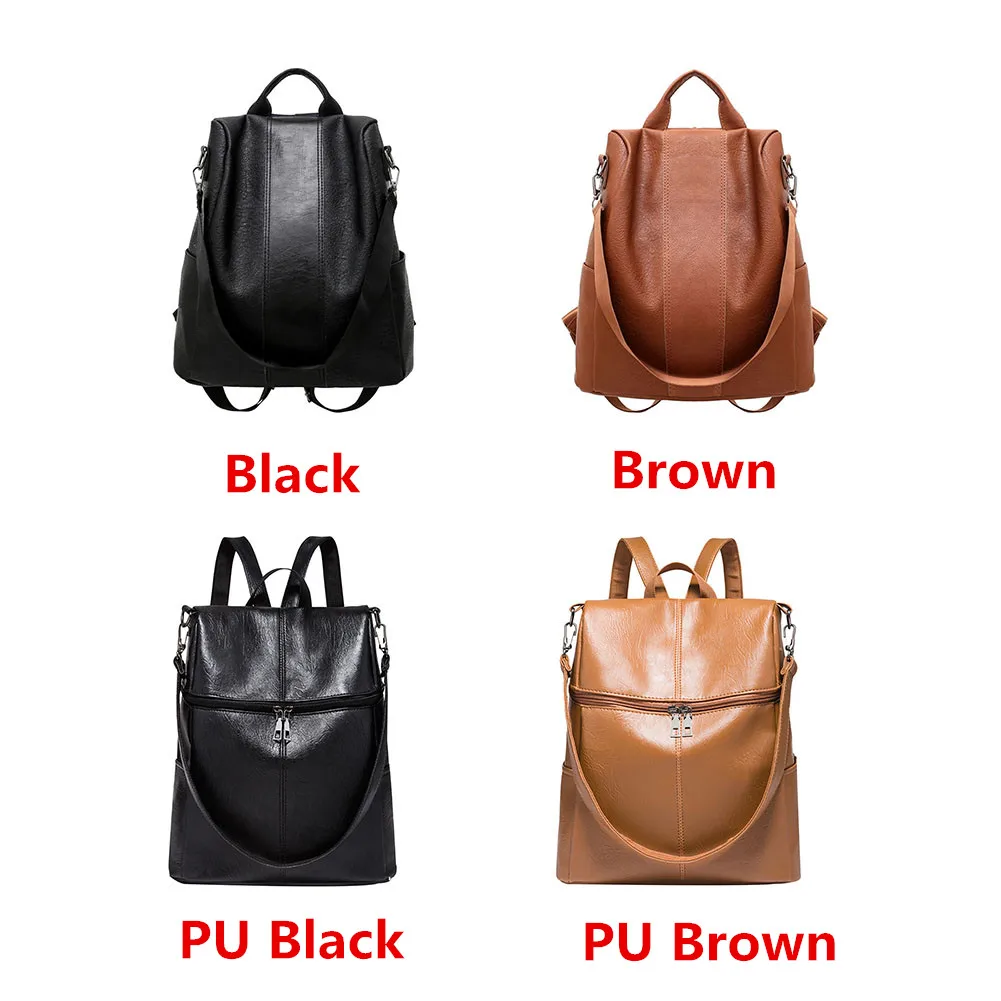 Stylish Travel Women Backpack Fashion PU Leather Zipper Lady Schoolbag Anti Theft Camping Casual To