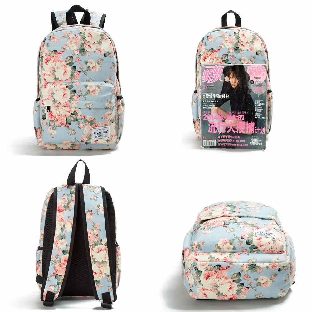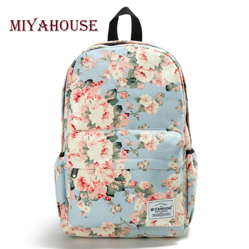 Miyahouse Classic Fl Printed Travel Backpack For Women Canvas School Backpack For Teenager Large Ca
