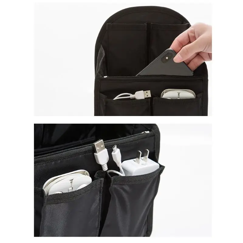 Travel Bag Backpack Insert Organizer Bag Solid Color Oxford Cloth Gadget Multi-Pocket Handbag For O