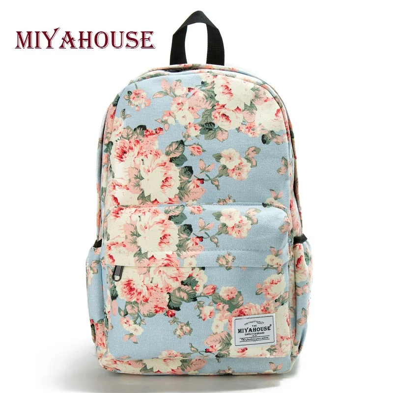 Miyahouse Fresh Style Women Backpacks Fl Print Bookbags Canvas Backpack School Bag For Girls Rucksa