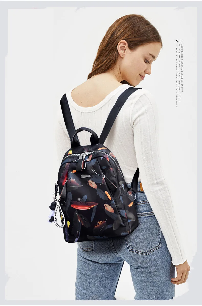 Anti-thief Feather Print Backpack Female Oxford Cloth Waterproof Travel Casual Schoolbag Brand Ladi