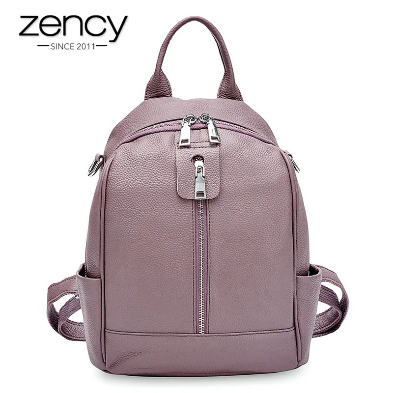 Zency Fashion Women Backpack 100% Cowhide Genuine Leather Black Travel Bags Girl's Schoolbag Notebo