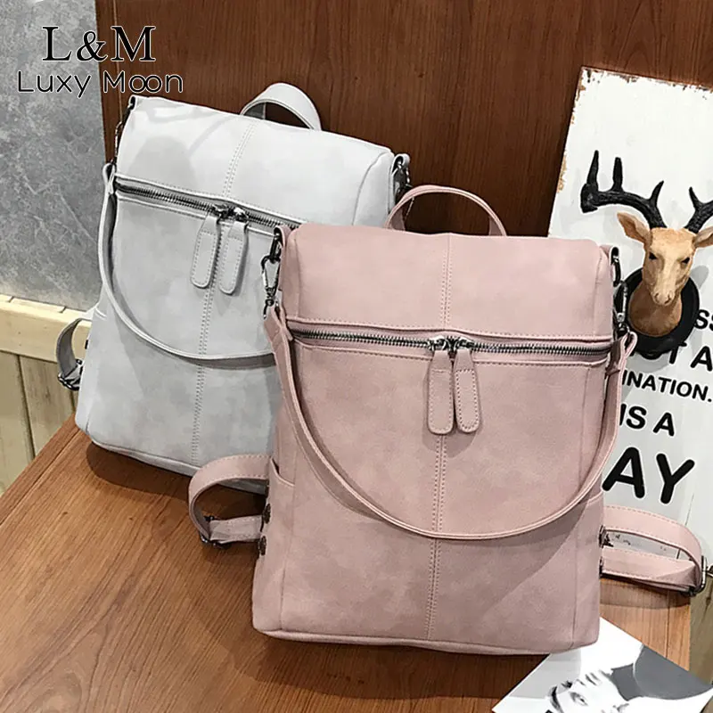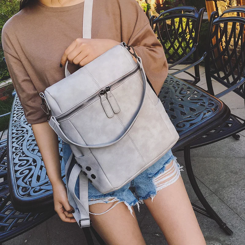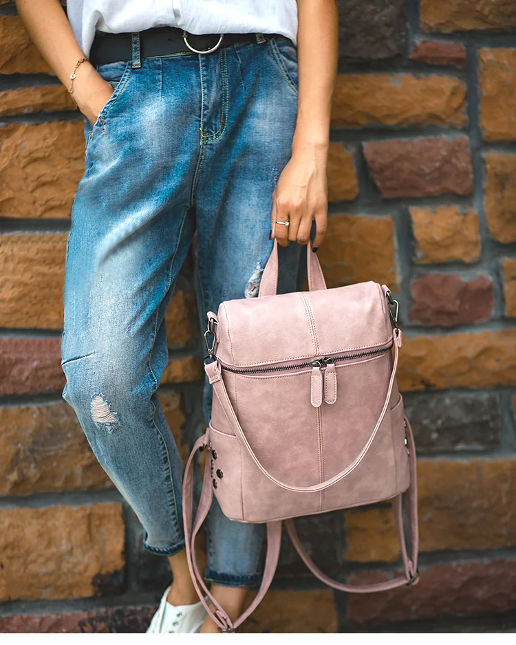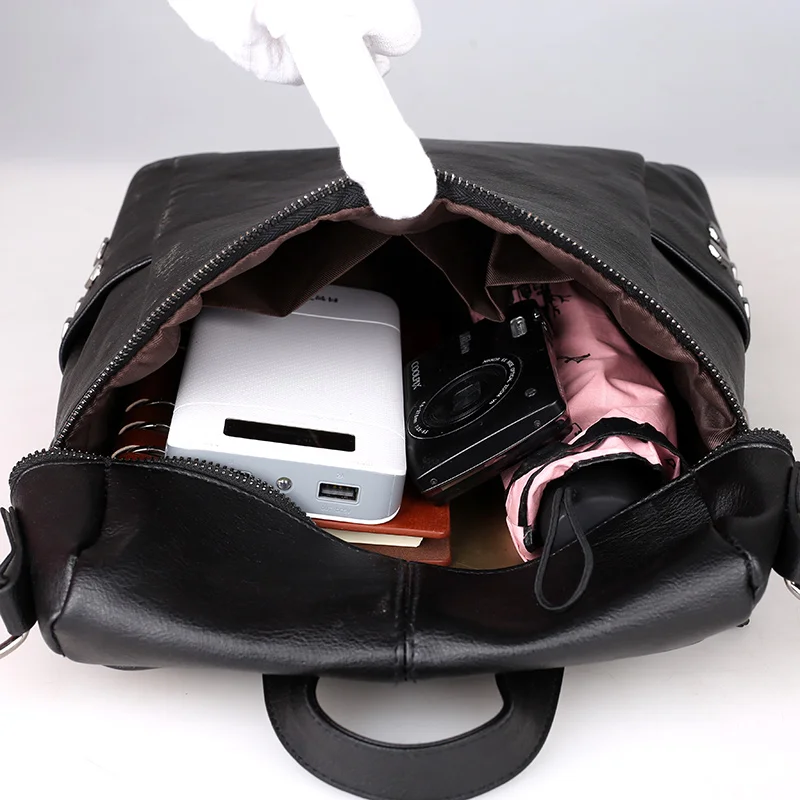 Vintage Women Backpack Leather Rivet School Backpacks For Teenage Girls Large Travel Shoulder Bags