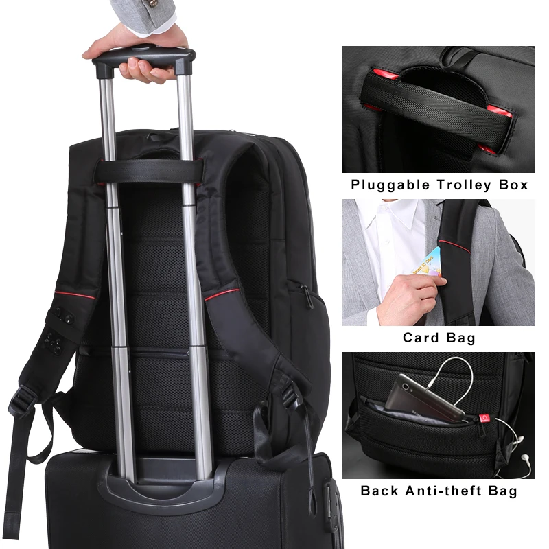 Kingsons 15"17" Laptop Backpack External USB Charge Computer Backpacks Anti-theft Waterproof Bags f