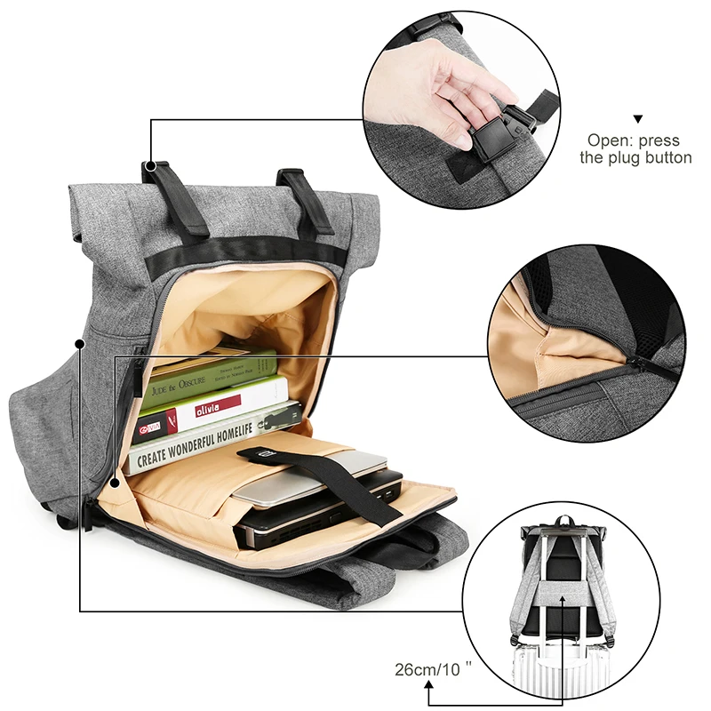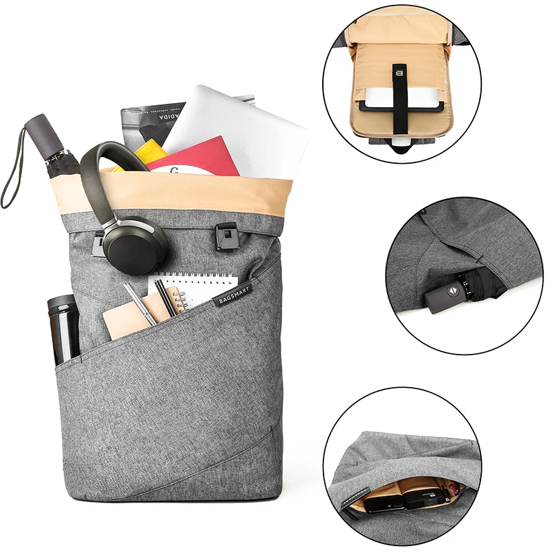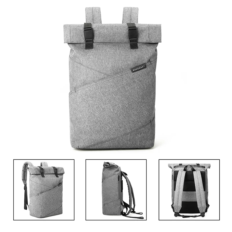 BAGSMART Laptop Backpack Weekender Travel Business Multipurpose Roll-Top Fashion Rucksack Fits 15.6