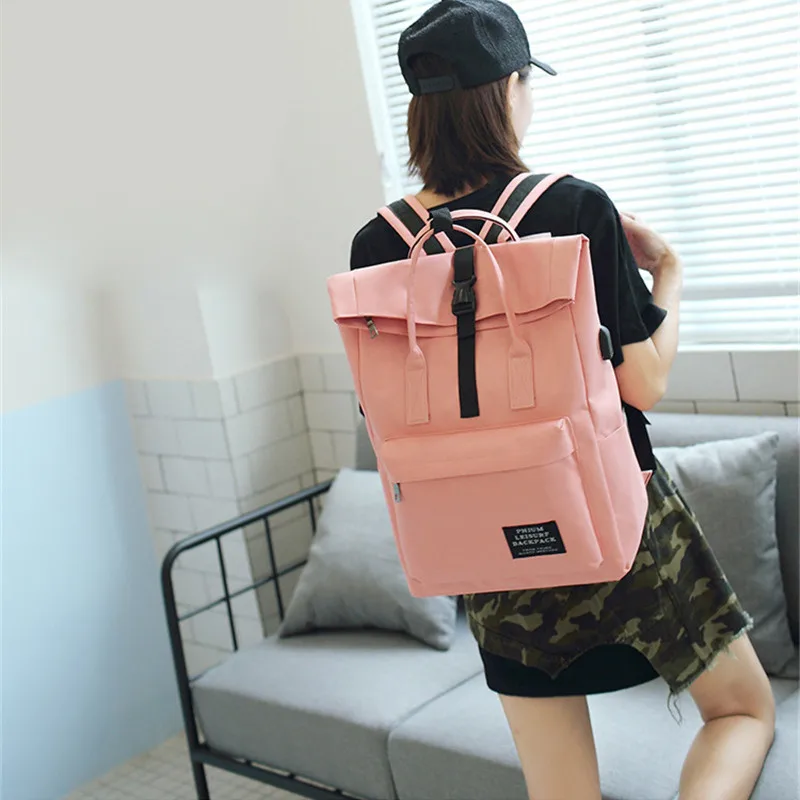 Women External USB Charge Backpack Canvas Backpack Male Mochila Escolar Girls Laptop Backpack Schoo