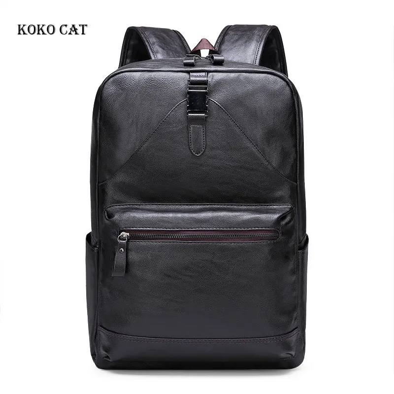 Men pu Leather Backpacks Black School Bags for Teenagers Boys College Bookbag Laptop Backpacks Trav