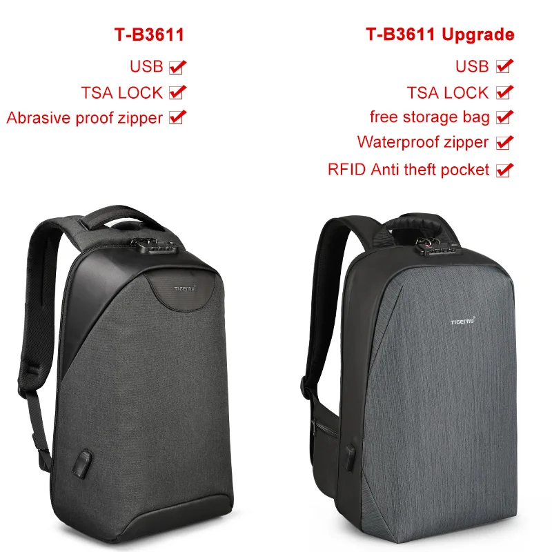 Tigernu Anti theft Male Laptop Backpack USB Splashproof School Bags for Teenager Men Backpacks NO K
