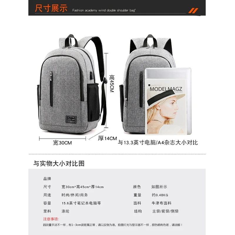 Anti-theft Bag Men Laptop Rucksack Travel Backpack Women Large Capacity Business USB Charge College