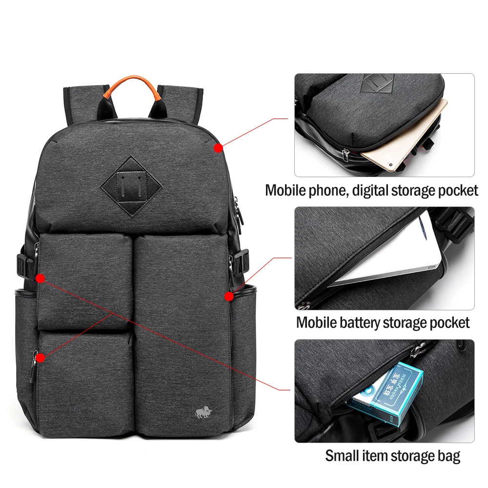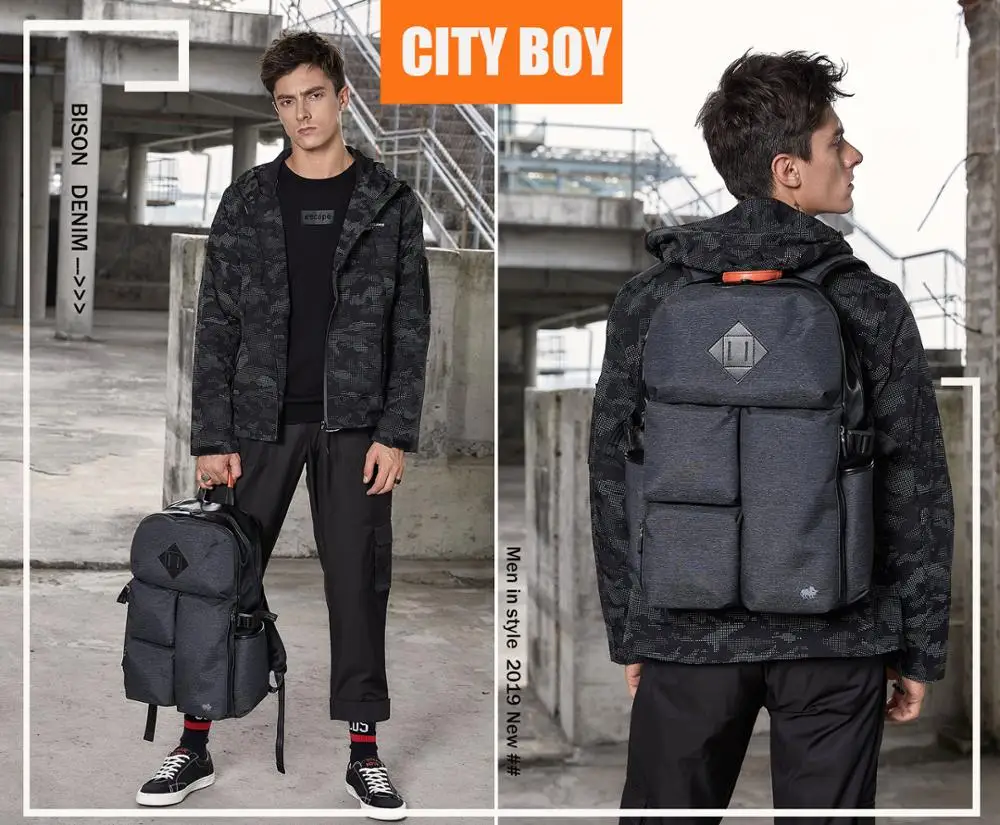 BISON DENIM Large Capacity Backpack Male Multifunctional 15.6" laptop Student School Bag Fashion Ru
