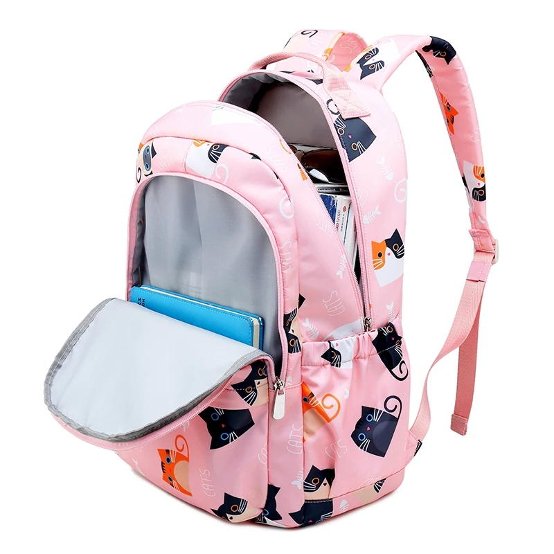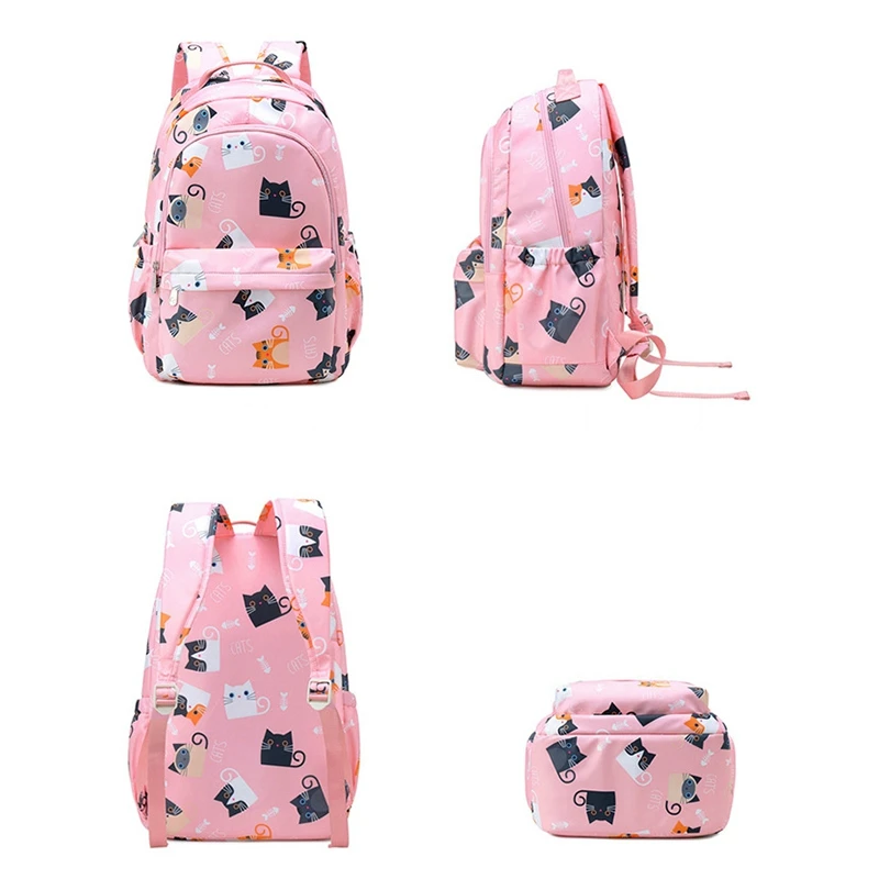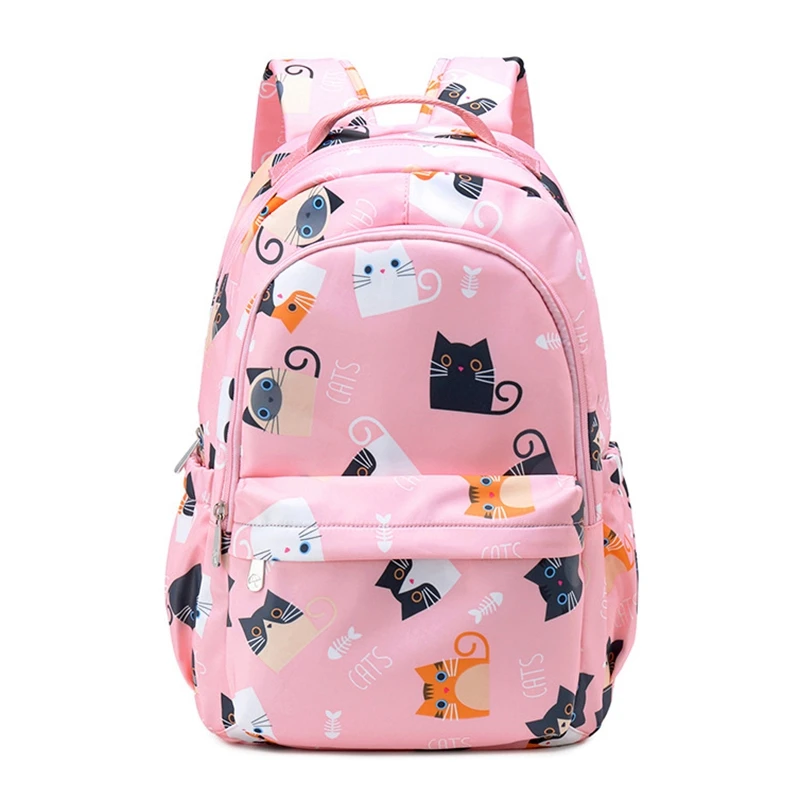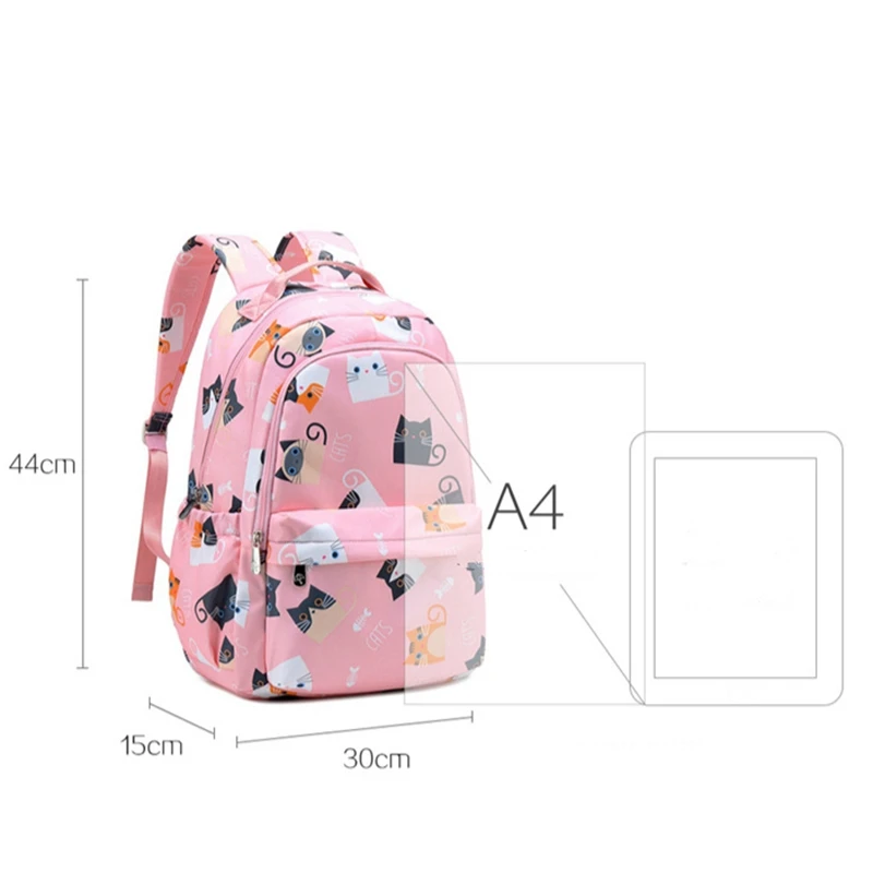 ABZC-Waterproof Kawaii Cat Printing Backpack Women School Students Backpack Female 15.6 Inch Laptop