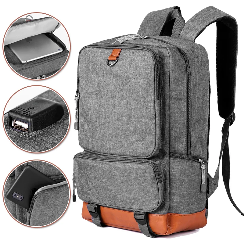 BOSEVEV Men's Backpack Luminous Student School Bags External USB Charge Laptop Backpacks Teenagers